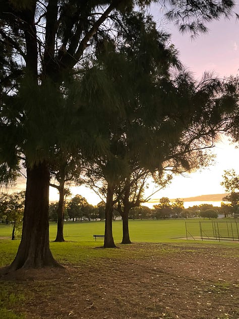 3 - Walks with Billie to the park as the sun was setting.